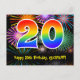 Cartão Postal Aniversário de 20 anos – Padrão Divertido de Fogos
