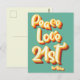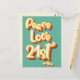 Cartão Postal Aniversário de 21 anos Paz Amor Retro Groovy Pôr d