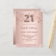 Um convite moderno, na moda e glamouroso para um aniversário de 21 anos. Um fundo metálico rosa dourado falso com rosa dourado e estrelas cor-de-rosa. O nome é escrito com um moderno e escuro, rosa dourado, escrito com letra de estilo manuscrito. Personalize e adicione os detalhes da sua festa. O número 21 é escrito com uma fonte de estilo balão, script. Fundo: rosa dourado, design postal. Dica: Se você não quiser que pareça um cartão postal, clique em personalizar, vá para o verso e remova o divisor e o carimbo de posto.