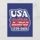 Celebre o 250º aniversário da América com um cartão postal de design inspirado nos anos 70 Groovy, apresentando um design vibrante e colorido com uma aparência patriótica. Este design de edição limitada, projetado na América, oferece uma mistura única de orgulho histórico e charme, tornando-o indispensável para as festividades de 2026.