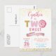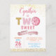 Cartão postal do Aniversário de 2 anos da menina com dois donuts doces com glitter dourado