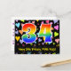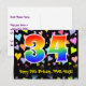 A frente deste cartão postal temático de aniversário, colorido e divertido, apresenta um grande número "34" com um padrão inspirado em gradiente de espectro de arco-íris. Também apresenta a mensagem "Feliz Aniversário de 34 anos," e um nome de destinatário personalizado. A frente também apresenta um fundo colorido e vibrante com um padrão de formas de coração amorosas. O verso apresenta uma mensagem de aniversário personalizada, ou pode ser deixado em branco se uma mensagem for escrita à mão. Um cartão postal de aniversário personalizado como este pode ser uma maneira divertida de reconhecer o aniversário de alguém de 34 anos. Cartões postais como este também podem ser usados para convidar convidados para uma celebração de aniversário para alguém que está completando 34 anos. [~Z0000448]
