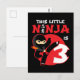 Este design de tema de festa de aniversário de crianças ninja é perfeito para o seu pequeno ninja de aniversário completando 3 anos de idade! Ótimo para meninos e meninas de 3 anos que gostam de ninjas, karatê, taekwondo, judô ou outras artes marciais. Apresenta 'Este Pequeno Ninja Tem 3' com símbolo japonês para Ninjutsu e gráfico de chute de karatê de desenho animado ninja que o menino ou menina de aniversário vai ADORAR!