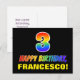 Cartão Postal aniversário de 3 anos: Negrito, Divertido, Simples