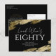 Design elegante com respingos de tinta dourada falsa. Todo o texto é ajustável e fácil de alterar de acordo com as necessidades da sua festa. Modelo de design Olhe quem está com oitenta. Salve a data