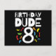 Cartão Postal Aniversário de 8 anos de idade do menino Festa Ani