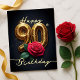 Cartão Postal Aniversário de 90 Anos Dourado Rosa Elegante Brilh