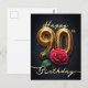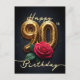 Cartão Postal Aniversário de 90 Anos Rosa Elegante Brilho Dourad
