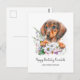 Envie votos de aniversário sinceros com este cartão postal adorável temático de Dachshund, apresentando um doce cachorro salsicha aninhado entre um buquê de margaridas aquareladas e lavanda. O texto totalmente personalizável permite que você personalize tanto a saudação quanto a seção “de” — perfeito para amantes de cães de todas as idades. Seja de um animal de estimação, uma família ou um amigo, este cartão encantador adiciona um toque atencioso e incrível a qualquer celebração de aniversário.