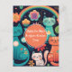 Cartão Postal Aniversário de gato fofo no estilo Boho