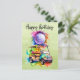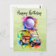 Cartão Postal Aniversário de Golfe com carrinho de golfe aquar