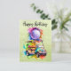 Cartão Postal Aniversário de golfe com carrinho de golfe aquarel