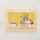 Uma menina de um ano de idade junto com sua boneca animada com o bolo de aniversário. Cartão postal simples para o novo bebê em sua vida. Ótimo para uma linha rápida. Confira também o selo correspondente. Todos os itens são recriados a partir de designs produzidos há mais de 55 anos.