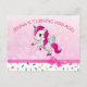 Cartões-postais de convite de aniversário de unicórnio fofo e granulado de bala rosa. Esta é uma maneira adorável e acessível de enviar convites personalizados.