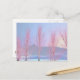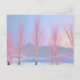 Pintura digital de pássaros cobertos por neve; a neve tingida de rosa pelo sol de fixação. Aqui no norte é comum ver árvores cobertas de neve formigadas, rosa ou laranja, pelo sol pendurado no horizonte.