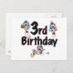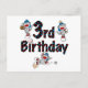 Três pequenos macacos-meias vestindo bonés azuis de beisebol estão lançando, deslizando e subindo no taco em nosso design Sock Monkey Baseball aniversário de 3 anos com macacos-meias e texto legal que diz "3º aniversário".