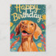 Saudação de aniversário do Vizsla. Um Vizsla sorridente deseja Feliz Aniversário. Perfeito para todos os amantes e donos de Vizsla.