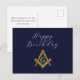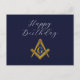 Cartão de aniversário azul marinho, Maçom Feliz Aniversário. Cartão postal de aniversário com esquadro e compasso Maçônico. Por favor, personalize-o com seu próprio texto ou exclua-o e escreva suas próprias palavras à mão.