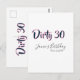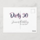 Cartão Postal Aniversário sujo 30 nome data rosa cinza caligrafi