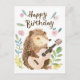 Cartão Postal Aniversárioouriço Fofo Tocando Violão