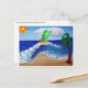 (A pintura é de um anjo verde em uma prancha laranja capturando uma onda. Um sol brilha no fundo e palmeira suavemente se move na praia. A onda está se preparando para cair na praia, suavizando a superfície arenosa. O anjo verde homenageia o Arcanjo Raphael, cuja cor é verde e é conhecido por trazer cura. O sol ajuda a sustentar a vida e através dela plantas como palmeiras se fortalecem e crescem. O poder da energia solar é simbolizado na placa de surfe amarelo-alaranjada. A praia é limpa e suave. Esta pintura foi inspirada pelo "Anjo de Cancer de Limpar". Em vez de adicionar texto a esta pintura, ela foi deixada em aberto para que você possa limpá-la, cavalgar a onda, ou outro ir com mensagem de fluxo para a praia, nuvem ou céu.