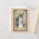 Trabalhos de arte bonito do natal vintage que mostram um anjo no branco que guardara uma árvore de Natal e cercado por uma beira bonita do pêssego, do ouro e da cerceta