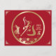 2023 é o Ano Novo Chinês/Vietnamita / Lunar tradicional "Ano do Coelho". O Coelho simboliza abundância, longevidade, prosperidade, esperança, boa sorte, renascimento e amor. Celebre o Ano do Coelho! Venha e adquira este CARTÃO-POSTAL do Ano Novo Chinês do Coelho vermelho e dourado com a caligrafia única em letras tradicionais chinesas de Coelho em mandarim, juntamente com um padrão de recorte de papel Chinoiserie Chic de nuvens auspiciosas e 2 coelhos. Você pode facilmente alterar o conteúdo do modelo de texto (fonte, cor, tamanho e posição) clicando no botão personalizar.