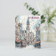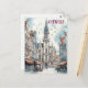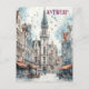 Este cartão-viagem, em estilo de ilustração com aquarela, mostra a linha do horizonte europeu de Antuérpia, Bélgica.