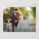 cartão de feriado do anúncio de casamento com roteiro branco e obrigado que você envia aos seus convidados. A imagem de casais pode ser personalizada.