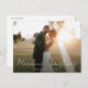 cartão de feriado do anúncio do casamento com um elegante roteiro de na moda preto e um obrigado que você envia aos seus convidados. A imagem de casais pode ser personalizada.