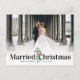 um simples cartão de feriado de anúncio de casamento moderno com um roteiro elegante vermelho e um obrigado que você envia aos seus convidados. A imagem de casais pode ser personalizada.
