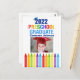 Este cartão de formatura de pré-escola de 2022 apresenta um boné de graduação legal acima de escrita colorida e uma fileira de lápis de cor em arco-íris. Cartão de congratulações de graduado de pré-escola fofo em cores divertidas para o último dia da escola primária com a foto do seu filho e texto personalizado. Parabéns ao nosso graduado de pré-escola!