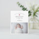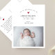 Este maravilhoso e elegante anúncio de chegada ao bebê e obrigado que você postcard mostra uma foto e uma tipografia clássica. Na frente, há um belo anúncio de bebê de novo nascer que inclui uma mensagem de introdução, um nome, data de nascimento, altura e peso. A parte inferior apresenta a foto horizontal. A parte de trás apresenta um obrigado que você envia (você pode usá-lo para obrigado sobre presentes no chá de fraldas, e o cuidado e atenção que teve durante a gravidez). Para personalizar este cartão, basta clicar no botão "Personalizar" e mudar todos os detalhes, incluindo a fotografia, para o seu.