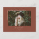 Foto de orientação horizontal personalizada com nome, escola e ano no canto superior esquerdo com a arte da linha do script "formando" no centro inferior. O fundo é o terracota escuro. Personalize a mensagem no verso.
