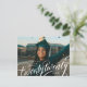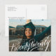Este cartão-postal de lançamento de graduação apresenta uma foto vertical com perda de cheio, texto com letra de mão e espaço para incluir o nome do formando, a escola e os planos futuros no verso.