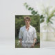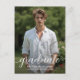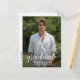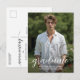 Um cartão postal de anúncio de graduação elegante apresenta sua foto, a palavra formando, seu nome, escola e ano de aula na frente e seus detalhes de lançamento no verso. Você pode mudar o texto no verso de um anúncio para um convite festa de formatura. CORRESPONDENTE a itens na nossa coleção.