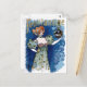 Uma bela imagem em blues da francesa de cerca de 1900 segurando uma garrafa de Liquor Feuillantine.