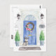 Anuncie seu novo discurso com nosso anúncio de na moda com uma Miniatura Schnauzer, porta azul, tapete de boas-vindas, tabuleiro, topiários e uma coroa floral em um fundo de tijolo de cinza.