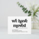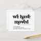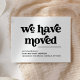 Este anúncio comovente ao estilo "boho", preto e branco, diz "nós nos movemos" na tipografia retrorreflectora preta sobre um simples fundo branco. A maneira perfeitamente na moda para deixar amigos e familiares saberem que você tem uma nova casa.