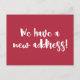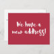 Anuncie sua mudança com estilo com este cartão postal moderno em vermelho “Temos um novo endereço!”. Concebido com uma caligrafia branca ousada em um fundo vermelho rico, é uma maneira elegante de informar amigos e familiares onde encontrá-lo. Totalmente personalizável no verso com seu novo endereço e mensagem. Um cartão de atualização divertido e minimalista, perfeito para novos proprietários, inquilinos ou casais que acabaram de se mudar.