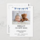 Anúncio de Nascimento da Bandeira Azul Moderna Cartão postal Foto do solteiro moderno no anúncio de nascimento do garoto da frente, com uma bandeira azul e texto preto. A mensagem dos pais aparece no verso. Este cartão postal de anúncio de nascimento moderno é uma forma doce de anunciar o nascimento do seu bebê recém-nascido.