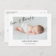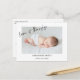 Anúncio de Nascimento da Caligrafia em Paisagem Moderna Cartão postal Foto do solteiro Moderno no anúncio de nascimento com uma caligrafia moderna que lida com obrigados e amor e os detalhes de natalidade aparecem no verso. Este cartão postal de anúncio de nascimento moderno é uma forma doce de anunciar o nascimento do seu bebê recém-nascido.