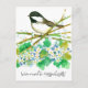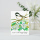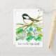 Um cartão-postal comovente, decorado com um doce frango num ramo de catkins salgueiro e flores florescentes de maio ilustrado com tinta e pintado com aquarela. Inspirado pelo pássaro estadual e flor estadual de Massachusetts. Aproveite o Estado da Baía! Você pode editar o texto com seus detalhes.