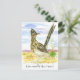 Um cartão-postal comovente, decorado com um roadrunner numa paisagem desértica com uma planta iucca florescente e montanhas roxas ilustradas com tinta e pintadas com aquarela. Inspirado pelo pássaro e flor estadual do Novo México. Aproveite a Terra do Estado Encantador! Você pode editar o texto com seus detalhes.