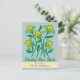 Um anúncio comovente e caloroso sobre o tema "Plantar Novas Raízes". A design apresenta uma ilustração de cinco elegantes flores amarelas com folhas e caules verdes, colocados sobre um fundo azul-claro. As flores são agrupadas de perto, e seus caules se cruzam e se entrelaçam na base, dando sentido de unidade e crescimento. A forma das flores, incluindo suas pétalas graciosas, semelhantes a asas, são inspiradas pela Iluminação Persa (Tazhib). Abaixo das flores, em uma escrita orgânica e fluente, a frase "Plantar Novas Raízes" é escrita. Por baixo disso, uma banda de cor creme exibe os detalhes de contato em uma fonte limpa e casual. Inclui um nome de família ("Os Andersons"), um endereço, um número de telefone e um endereço de e-mail, todos centralizados e ordenados de forma adequada. Um cartão perfeito para anunciar uma mudança para uma nova casa ou iniciar um novo capítulo.