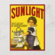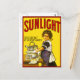 Anúncio antigo do sabão para lavar roupa Sunlight. Menina bonitinha de avental lavando suas roupas.