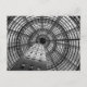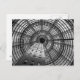 Esta tela apresenta um abstrato preto e branco de um teto e a torre que o levanta.