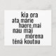 Esta design celebra as saudações do dia a dia de Aotearoa Nova Zelândia, com frases no reo Māori como kia ora, ata mārie, haere mai, nau mai, mōrena e tēnā koutou. O texto é apresentado em uma fonte sans serif limpa e moderna — letras negras em um fundo azul calmante.