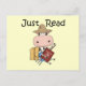 Leia T-shirts, capuzes, canecas, cartões, autocolantes, botões, ímãs, mousépias, jornais, guardas e outras roupa de leitura e presentes que promovem a leitura de uma forma fofa! Uma vaca com chapéu de palha e garfo de jarra descansa contra um fardo de feno com um livro!