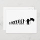 Entdecke die unterhaltsame Seite der Evolution mit unserer einzigartigen schwarzen Postkarte. Das kreative Design in Weiß präsentiert humorvolle Silhouetten, beginnend mit den Jägern und Sammlern, über den Neandertaler und den Höhlenmenschen, bis hin zum strahlenden Astronauten bei einer legendären Mondlandung.